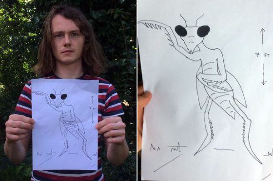 Le jeune homme décrivit la curieuse créature comme se tenant à au moins sept pieds de hauteur et possédant « une tête triangulaire et de grands yeux noirs ovales ». Elle avait toutes les caractéristiques d’une mante mais « se tenait sur deux pattes et avait une forme quelque peu humaine ». Étouffé par cette entité ressemblant à un insecte, Froggatt a simplement regardé dans les yeux et a eu l’impression que lui et cette bizarrerie communiquaient d’une manière ou d’une autre par télépathie. « Ma peur a été remplacée par des pensées complètement étrangères de haine et de mal absolues qui étaient projetées par cette ‘chose’ », a-t-il dit, racontant les messages effrayants.