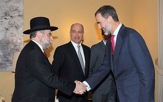 Le roi Felipe VI d’Espagne, (à droite), et le président de la Conférence des rabbins européens, Pinchas Goldschmidt, au palais royal El Pardo de Madrid, le 13 décembre 2016.