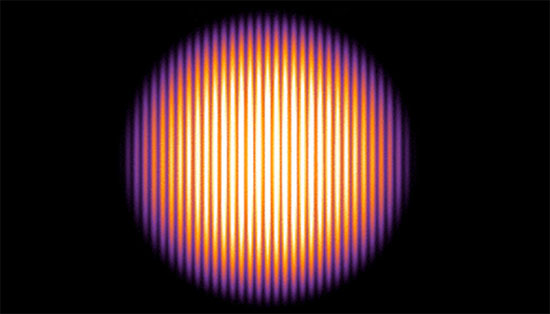 Cette simulation numérique met en évidence des régions de surdensité et de sous-densité dans un condensat de Bose-Einstein. Le motif régulier indique que le condensat a une structure cristalline solide. En reproduisant ce système, il est possible de créer alors un supersolide présentant aussi des propriétés de superfluidité.