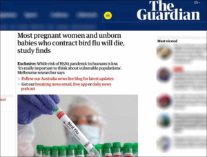 Dans une étude publiée dans Emerging Infectious Diseases, des scientifiques du Murdoch Children’s Research Institute de Melbourne ont examiné des cas confirmés de grippe aviaire chez des femmes enceintes et ont constaté que la plupart des cas se terminaient par le décès de la mère et de l’enfant à naître.