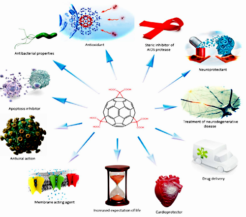 Les fullerènes s’avèrent être également de puissants transporteurs pour les médicaments classiques utilisés par exemple en cancérologie, permettant d’atteindre ainsi avec plus de précision la cible tumorale, grâce à leurs propriétés autophagiques vis-à-vis des cellules cancéreuses.