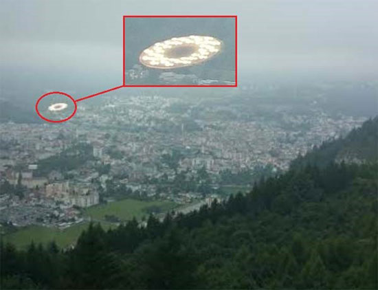 Cet OVNI, d’une clarté rare, possède une forme discoïdale avec un large trou en son centre. Sur sa surface, une multitude de lumières blanches sont visibles. A la vue de ce cliché, on pourrait penser qu’il s’agit simplement d’une lumière se reflétant contre une vitre. Sans détails supplémentaires, il sera difficile de trancher.