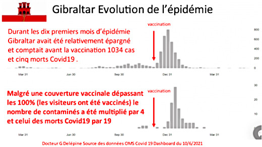 Mais depuis mai 2021, malgré son taux record de vaccinés, une augmentation des contaminations journalières (+ 300 %) est observée en Grande-Bretagne prouvant qu’un très haut taux de couverture vaccinale ne protège pas la population de l’épidémie.
