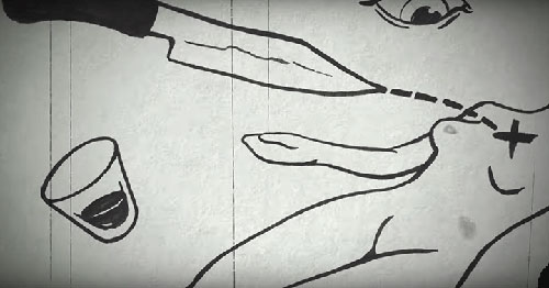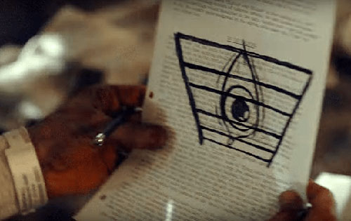 Pe lângă joaca sinistră realizată cu părțile trupurilor, Eminem desenează febril imagini violente ce îți dau fiori (vezi foto 2a și 2b). Desenul din poza 2a indică locul unde Eminem a înjunghiat o femeie, fiind supravegheat de ochiul singular, simbolul masoneriei. În acest videoclip apare de multe ori acel ochi malefic – ce reprezintă de fapt binecunoscutul semn al controlului ocult al elitelor satanice sau, altfel spus, al așa-zișilor „iluminațiˮ (vezi foto 3, ochiul în spatele gratiilor).