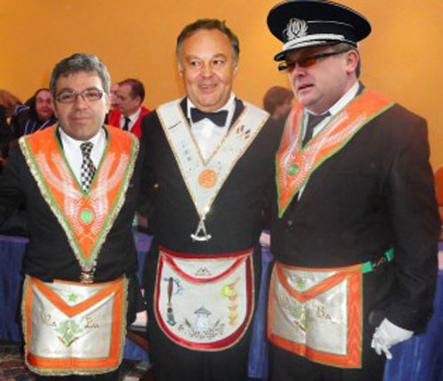 (O)CULŢI ÎN LOJĂ. Deşi masoneria e legal recunoscută în România, judecătorul Ovidiu Galea, afaceristul-politician Ioan Mintaş şi chestorul Liviu Popa – prezentaţi, de la stânga la dreapta, într-o imaginară consfătuire masonică, cu recuzita de rigoare – şi-au ascuns apartenenţa la Loja Ţara Crişurilor. Procurorii spun că însăşi adeziunea le era motivată de dorinţa de a se alătura unui „club” exclusivist din care fac parte „persoane cu funcţii şi poziţii importante, pentru a le obţine protecţia şi a-şi disimula postura infracţională”. Acesta ar fi fost, de fapt, secretul pe care nu-l voiau descoperit…