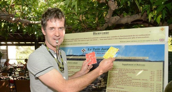 Located in the South of France, Le Petit Jardin has implemented a “two strikes and you’re out” rule against cell phones. The first time you’re caught using your phone at the table, a server blows a whistle at you and you get a yellow card as a warning. If you’re caught again? You don’t just get a red card, you literally get kicked out.