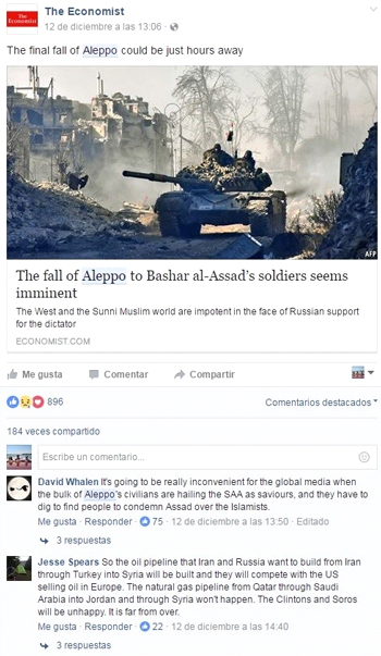 Let’s review some Facebook comments regarding Syria in mainstream media fan pages: