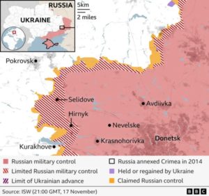 Într-o analiză a situației conflictului din Ucraina, BBC citează datele publicate de Institutul american pentru Studiul Războiului (ISW), care arată că, în 2024, trupele ruse au capturat circa 2.700 de kilometri pătrați de teritoriu ucrainean, față de 465 de kilometri pătrați în 2023.