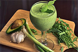 Amestecaţi la blender foarte bine 2 fructe de avocado coapte, 2 căni de apă, 2 linguri de ulei de măsline, sucul de la un lime sau zeamă de lămâie, un căţel de usturoi pisat, pătrunjel, patru frunze de spanac, de salată şi de sfeclă, dacă aveţi, condimente picante după gust, un praf de sare. Turnaţi supa în castron, decorând cu felii de roşie şi pătrunjel.