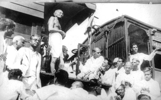 Parmi les compagnons de Gandhi, certains comme Jawaharlal Nehru plaident pour ne rien faire qui favorise l’ennemi japonais et son allié allemand. Mais pour Gandhi lui-même, l’heure des compromis est terminée. Tout en condamnant la violence et, pire encore, l’alliance avec l’ennemi japonais dans laquelle se compromet l’ultra-nationaliste Bose, le Mahatma lance le 8 août 1942, à Bombay, un mot d’ordre radical à l’adresse des Britanniques : « Quit India ! » (Quittez l’Inde !).