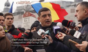 Într-un interviu acordat publicației The American Conservative, Simion discută despre viitorul României, potențialele alianțe cu liderii populiști din Uniunea Europeană și convingerea sa că un val patriotic străbate continentul.