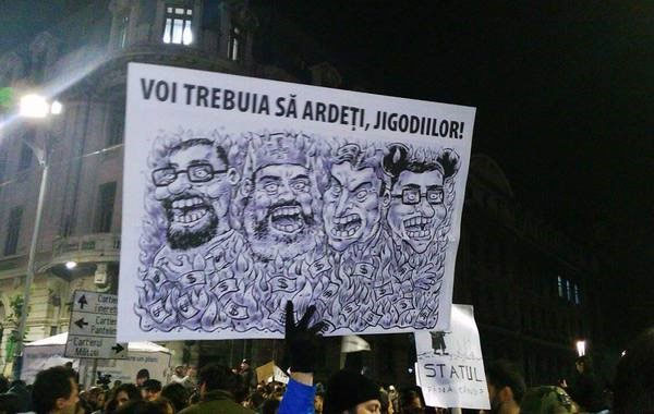 „Corupția ucide” a devenit strigătul lor de luptă, demonstranții din mai multe orașe acuzând politicienii pentru morțile tragice. Un protestatar a ținut o pancartă cu premierul, primarul Sectorului 4, ministrul de Interne și Patriarhul Ortodox Român în flăcări, cu mesajul: „Nu, nu, nu: Ar fi trebuit să ardeți cu toții”.