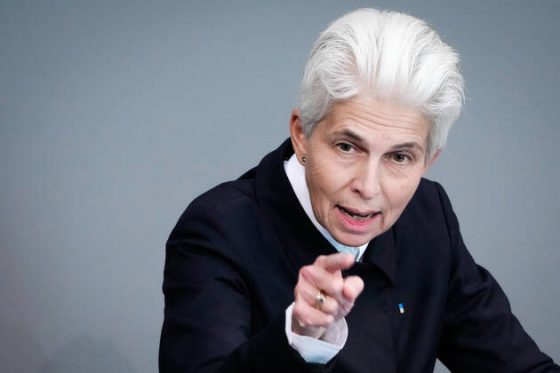 Ea este, de asemenea, cunoscută drept unul dintre cei mai răspândiți promotori ai războiului din guvernul german, cerând Germaniei să trimită tancuri și alte arme grele în Ucraina. Ea a fost criticată și pentru legăturile sale cu industria armelor.