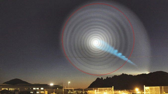 According to Strange Sounds: “The mysterious spiraling glow was produced by the launch of the intercontinental ballistic missile RS-12M Topol from Kapustin Yar to test an advanced version of warheads. The warhead hit the designated target at the Sary-Shagan testing range in Kazakhstan.”