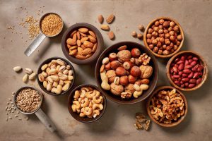 În aparență, nucile și semințele nu pot fi considerate gustări cu puține calorii din cauza conținutului mare de lipide. Totuși, tocmai conținutul de grăsimi vegetale împreună cu proteinele și fibrele specifice reduce apetitul și conferă rapid senzația de sațietate, astfel că nu este deloc dificil să le consumi în porții moderate.