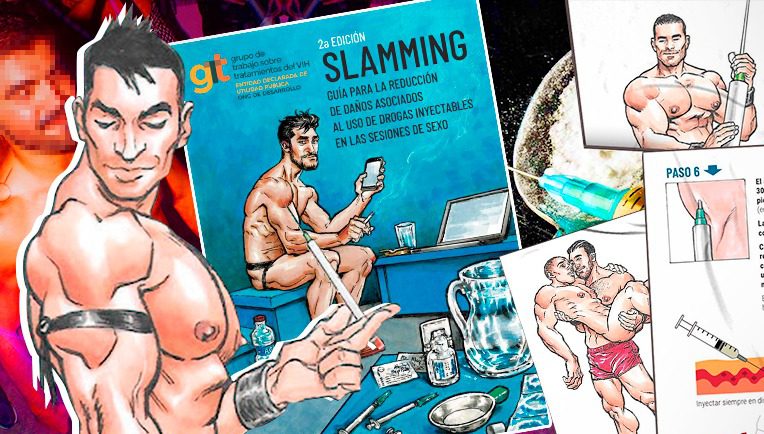 Ghidul prezintă doi bărbați împreună, ceea ce sugerează că această practică este mai frecventă în rândul homosexualilor, în special în contextul orgiilor. Drogurile cel mai des folosite în slamming sunt: metamfetamina, cocaina, speed, mededrone și ketamina.