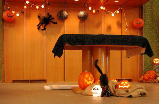 Pentru comparaţie, priviţi o fotografie cu decoraţiunile dintr-o „biserică” catolică ce a fost pregătită pentru săvârşirea unei liturghii de… Halloween!!!