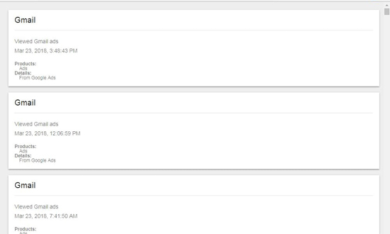 I’ll just do a short summary of what’s in the thousands of files I received under my Google Activity. First, every Google Ad I’ve ever viewed or clicked on, every app I’ve ever launched or used and when I did it, every website I’ve ever visited and what time I did it at, and every app I’ve ever installed or searched for.