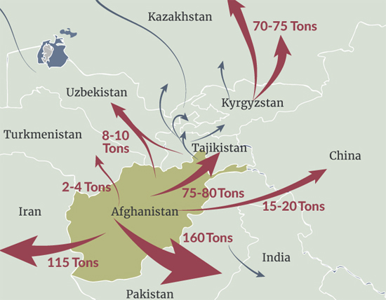 În mod uimitor, „înainte de 1979, Pakistanul și Afganistanul au exportat foarte puțină heroină în Occident”, dar până în 1981, „camioane din celula logistică națională a armatei pakistaneze, care soseau cu arme CIA din Karachi, au revenit adesea încărcate cu heroină – protejate de ISI [Serviciul de Securitate Internă a Pakistanului] cu documente care le scuteau de percheziția poliției” (Peter Dale Scott, The Road to 9/11).