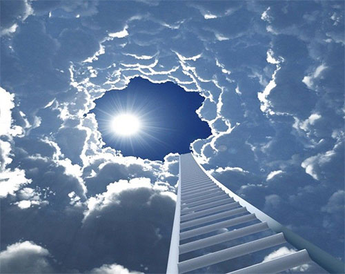 3. Ne imaginăm apoi coborând o scară lungă până ce ajungem jos, la o uşă poziţionată exact în dreptul ei. O deschidem şi descoperim un spaţiu plin de lumină strălucitoare unde există o mulţime de oameni. Intrăm în acel spaţiu subtil şi începem să mergem printre acei oameni şi chiar să vorbim cu câţiva dintre ei.