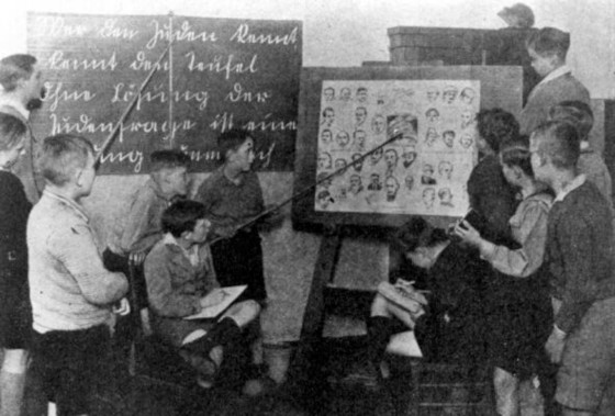 Șarpele” care a provocat contaminarea sângelui arian pur a fost, desigur, evreul. Cea mai puternică contraparte a arianului este reprezentată de evreu.[9] Pentru Hitler, evreii nu erau, desigur, membri ai unei anumite credințe religioase, ci ai unei anumite rase: