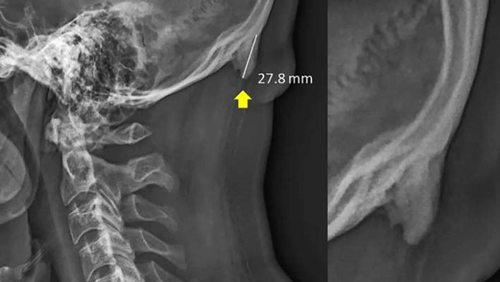 Due for texting and communicating hours on end a spur appears which is actually the result of non-normal stresses placed upon the human neck as a result of using cell phones. It’s an “adaptive response” the body is making in order to deal with, plus accommodate, stresses it never encountered before. It’s similar to hormone disruptor chemicals changing male frogs into becoming female or bisexual from chemical pollution, especially atrazine, in the waters they inhabit.