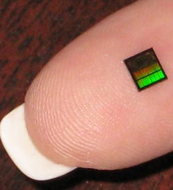 Deşi sunt aproape microscopice, etichetele RFID care au fost create de Hitachi şi de alte companii similare, nu sunt închise în capsule din sticlă şi ele nu ar fi potrivite pentru implantul uman. Acest tip de etichete RFID „de mărimea unor fire de nisip” au, de asemenea, antene extrem de mici, prin care nu pot transmite un semnal la o distanţă mai mare de câţiva milimetri. Pentru a le citi semnalele, cititoarele RFID trebuie să se apropie foarte mult, până ajung să fie aproape în contact cu etichetele. Etichetele RFID extrem de mici ar fi inutile pentru urmărirea sau identificarea oamenilor, deoarece ele nu ar putea fi citite din afara corpului.