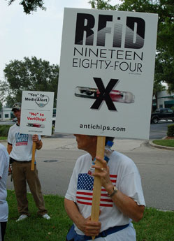Cu mai mulţi ani în urmă, Compania VeriChip (pe atunci cunoscută sub numele de Applied Digital Solutions) a încercat şi ea să implanteze cu cipuri adulţi bolnavi mintal din Orange Grove Center din Tennessee. Nici acei pacienţi nu au putut să îşi exprime consimţământul, din cauza dizabilităţii lor mentale, înainte de a fi implantaţi. Expunerea publică şi opoziţia membrilor familiilor acestora a determinat anularea proiectului centrului Tennesse. Din câte ştim noi, niciun adult sau copil aflat în deplinătatea facultăţilor mentale nu a fost implantat cu forţa, fără a-şi exprima consimţământul, cu un implant VeriChip sau cu un alt dispozitiv de urmărire sau monitorizare.