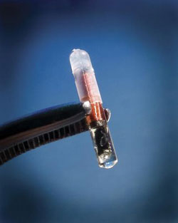De fapt, canula VeriChip este atât de mare, încât implantarea ei ar fi extrem de dureroasă dacă nu ar fi precedată de mai multe injecţii pentru anestezie locală. Anestezicul este administrat printr-un ac mult mai mic, de mărime standard, hipodermic, înainte de procedura de implantare a cipului.
