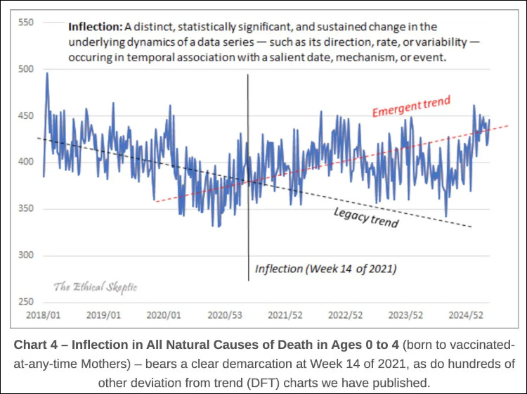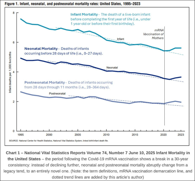 1. Teratogenicitate – Curbele mortalității infantile s-au „rupt” brusc după decenii de declin odată cu vaccinarea cu ARNm a femeilor însărcinate și a viitoarelor mame.