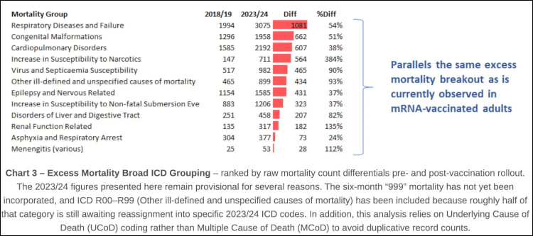 2. Moștenire epigenetică – Copiii născuți la un timp semnificativ după lansarea vaccinului cu ARNm se confruntă cu o mortalitate sistemică excesivă, în concordanță cu perturbările biologice observate la adulții expuși direct la acest produs vaccinal.