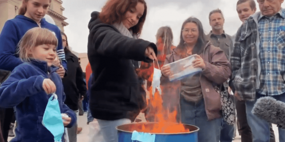 Filmările postate pe Twitter de Sergio Olmos și David Gura, dintre care una a totalizat aproape 4 milioane de vizualizări, prezintă o ardere colectivă a măștilor de către un grup de părinți și copii care s-au adunat în jurul focului foc aprins într-un butoi metalic. Aceștia se leapădă pe rând de măști și rostesc îndemnuri mobilizatoare.În orașul Boise, celor 230.000 de locuitori li se recomandă să poarte măști, însă măsura nu are caracter obligatoriu. Asta pentru că guvernatorul republican al statului Idaho, Brad Little, nu a impus purtarea măștilor la nivel statal. Cu toate acestea, 7 regiuni și 11 orașe au făcut-o din exces de zel.