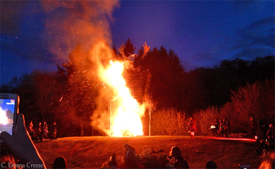 „Se presupune că sacrificii de animale se fac la fiecare festival de la Beltane pentru a asigura fertilitatea ogoarelor, precum şi că la fiecare cinci ani celţii din Tărâmurile de Sus ar sacrifica oameni din rândul criminalilor condamnaţi şi prizonierilor de război. Aceştia ar fi sacrificaţi de către druizi, chiar dacă metodele variază. Mulţi se presupune că sunt doborâţi de săgeţi, dar descrierile ceremoniilor galo-celtice arată cum aceştia sunt arşi de vii într-un imens om de răchită.” – Mysteriousbritain.co.uk