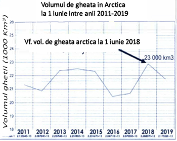 De fapt, staţiile meteo situate pe coastele Arcticii înregistrează mai degrabă răciri decât încălziri ale climei în zonă. Aceasta a surprins foarte multe persoane! Sezonul topirilor arctice începe la 1 iunie. Este momentul în care se calculează volumul gheţii arctice. În 2018, tendinţa a fost surprinzătoare. În loc să diminueze rapid, cum afirmă deseori oamenii de ştiinţă alarmişti şi anumite media, banchiza a crescut puţin. De fapt, volumul gheţii nu a diminuat de 13 ani!