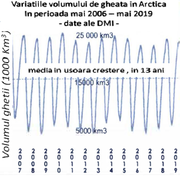 În 2019, nu a fost nimic extraordinar în ceea ce priveşte topirea arctică din timpul verii. Raportul grosime/volum al banchizei arctice nu s-a modificat cu nimic în raport cu media dintre anii 2004-2013. Institutul Danez de Meteorologie (DMI) publică regulat aceste date, care demonstrează că topirile şi glaciaţiunile arctice sunt în limite normale după 2006. Nicio topire anormal crescută nu s-a semnalat.