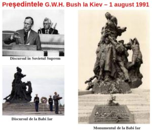Cea mai elocventă ilustrare a acestei situații este discursul președintelui G.H.W. Bush în Sovietul Suprem de la Kiev, la 1 august 1991, [7]. Bush se întâlnise, la 30 iulie, cu Gorbaciov la Moscova și îl asigurase că îi va consilia pe ucraineni împotriva independenței. La Kiev a refuzat orice contact cu liderii naționaliști.