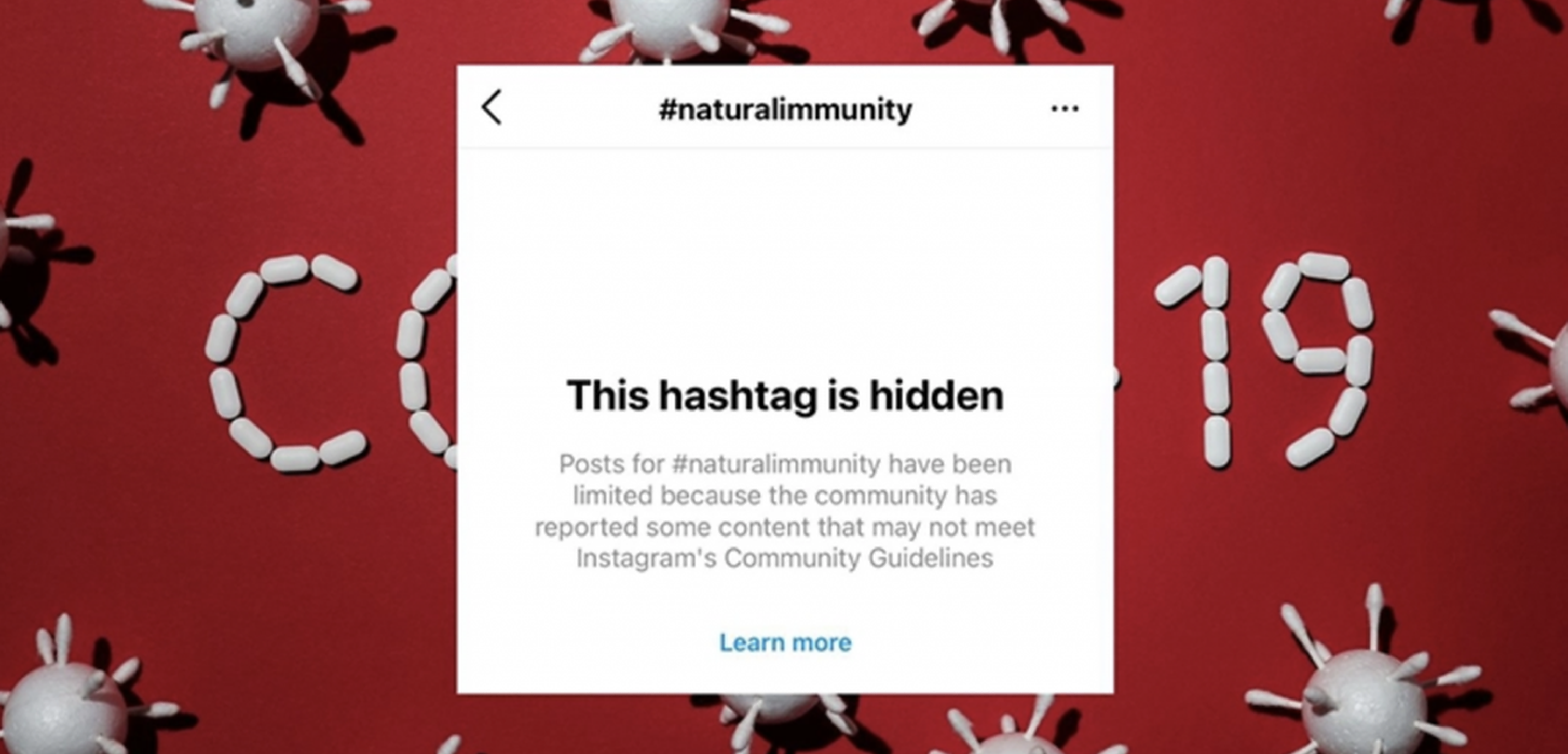 Utilizatorii de Instagram au observat că platforma cenzurează hashtag-ul #naturalimmunity (imunitate naturală). Jurnalistul independent Luke Rudkowski scrie pe Twitter: „Uite ce se petrece când cauți #naturalimmunity pe Instagram”, arătând o captură de ecran cu o fereastră pop-up pe care scrie: „Cauți informații despre vaccin? Când vine vorba despre sănătate, toată lumea dorește informații fiabile și actualizate. Accesați site-ul oficial al Centrului pentru Controlul și Prevenirea Bolilor, care conține informații care vă răspund întrebărilor pe care le aveți despre vaccinuri.”