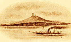 După două ceasuri de plutire spre răsărit, zărim înaintea noastră o movilă albă. Acolo-i insula Şerpilor. De departe par ruinele unei cetăţi fantastice înfipte în valuri. La vreo sută de paşi vaporul se opreşte. O barcă ne ia, şi peste câteva minute punem piciorul pe ţărmul pietros al acestui singuratec ostrov. Un dorobanţ chipeş, frumos, vine vesel înaintea noastră. El ştie că odată cu noi i-au sosit merindele de la Sulina.