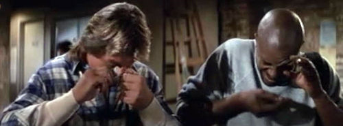 S’ensuit l’une des plus longues scènes de corps à corps que nous n’avons jamais vue (huit minutes de coups de poing et de coups de pied), scène qui dure si longtemps qu’elle en devient tout à fait absurde et même comique. Tout en semblant ridicule, cette scène dit quelque chose sur la difficulté de faire sortir des gens normaux de leur parfaite ignorance.