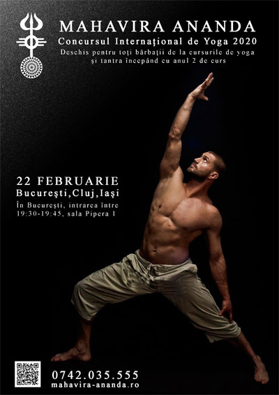 Într-o ambianţă fraternă, plină de masculinitate, umor, inteligenţă, spontaneitate şi virilitate debordantă, sâmbătă, 22 februarie 2020, Grupul de Vira MAHAVIRA ANANDA organizează Concursul Internaţional de Yoga, care urmăreşte să-i evidenţieze pe cei mai excepţionali bărbaţi din Școala noastră de yoga.