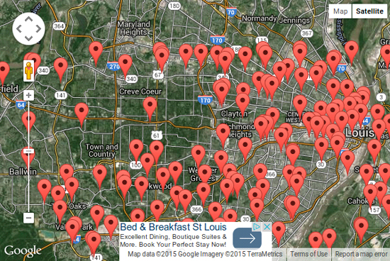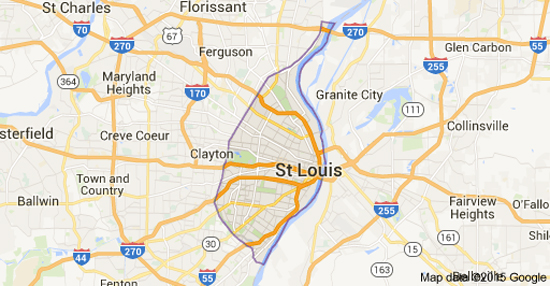 Pe hartă, de acolo de unde scrie St. Louis şi până în Clayton şi Creve Cœur, și chiar dincolo de acestea, este zona în care locuiesc cei 1%. Este un fapt, pe care vi-l poate confirma orice localnic.