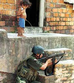 menţine o armată numeroasă care impune cu forţa politica proprie acolo unde alte măsuri subtile au eşuat;