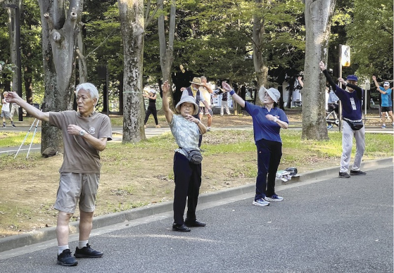 Radio Taiso, un exerciţiu de grup zilnic, face parte din cultura japoneză din 1928, fiind creat pentru a încuraja spiritul comunitar şi sănătatea publică. Rutina de trei minute este difuzată la televizor şi practicată în mici grupuri comunitare din toată ţara.