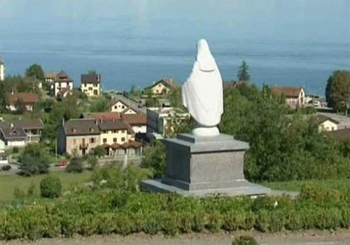 Reprezentarea în marmură a Sfintei Fecioare se află în orașul de pe malul Lacului Geneva, la mică distanță de granița cu Elveția, din anul 2011. Dar a devenit subiect al numeroase controverse locale după ce mulți francezi s-au declarat deranjați de faptul că statuia a fost plătită din fondurile primăriei.
