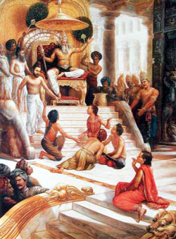 Brahmanule, văd că nu afli nicio plăcere în contactul cu bucuriile lumeşti şi călătoreşti singur, fără niciun însoţitor sau membru al familiei. De aceea, deoarece sunt sincer curios, te rog spune-mi motivul marelui extaz pe care îl simţi în fiinţa ta.»