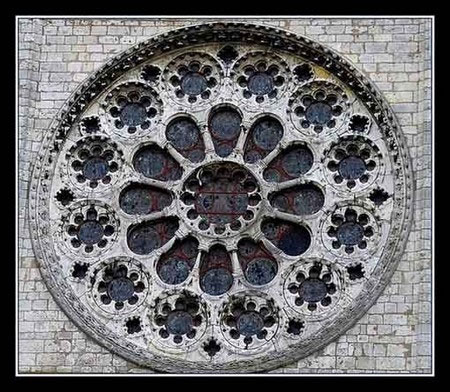 Nous pouvons considérer que le rôle des rosaces, roses et roue de la fortune des cathédrales et églises au Moyen Age en Occident, est permanent. Ces figures ont en effet pour but de permettre la Réintégration par le passage de la périphérie au Centre. Nous défendons ici la thèse suivante : les rosaces des cathédrales ne sont pas des virtuosités uniquement architecturales et esthétiques, mais elles sont des schémas de la conception du Monde et ceci de la période romane jusqu’à la fin de la période gothique. Cette conception du monde est symbolisée par 7 cercles concentriques : ce sont les 7 mondes, les 7 cieux et les 7 terres. Ceci se retrouve depuis les temps les plus reculés jusqu’à la fin du XVI siècle en Europe et dans toutes les civilisations, par exemple, chez les Arabes avec la cosmogonie de Mashudi au XI siècle.