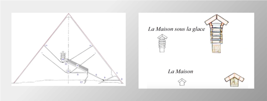 Cette maison, c’était l’Antarctique, anciennement appelé l’Atlantide et grâce aux coordonnées fournies par la pyramide et aux cartes radars de la NASA, on a localisé sous la glace de l’Antarctique, deux cités correspondant exactement à la description donnée par Platon.