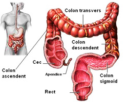 • florei colonice de putrefacţie, împiedicând-o sa se deplaseze către intestinul subţire, ea existând, în mod normal, în colonul descendent, care are un pH mai ridicat. Când pH-ul creşte, flora dăunătoare se înmulţeşte (Escherichia, Clostridium, Proteus, Estaphilococcus, Pseudomonas, Cándida etc). Flora de putrefacţie descompune proteinele nedigerate în aminoacizi, care mai departe sunt decarboxilaţi etc. În colon, triptofanul este descompus în indol şi scatol, care dau mirosul caracteristic materiilor fecale şi tot aici se formează amoniacul, care este absorbit şi transformat la nivelul ficatului în uree etc.