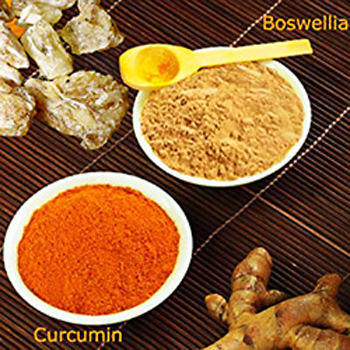 La boswellie (Boswellia serrata) est un arbre originaire de l’Inde dont on utilise la résine qui exsude du tronc. Le curcuma (Curcuma longa) est une plante rhizomatique originaire de la même région. Les deux sont traditionnellement utilisés pour soulager les douleurs aux articulations.