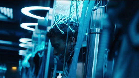 Dans le deuxième film, nous voyons une vaste salle remplie où WCKD a suspendu tous les enfants qui sont immunisés contre le virus, les gardant en stase pendant que leur cerveau est lentement vidé de ses fluides.